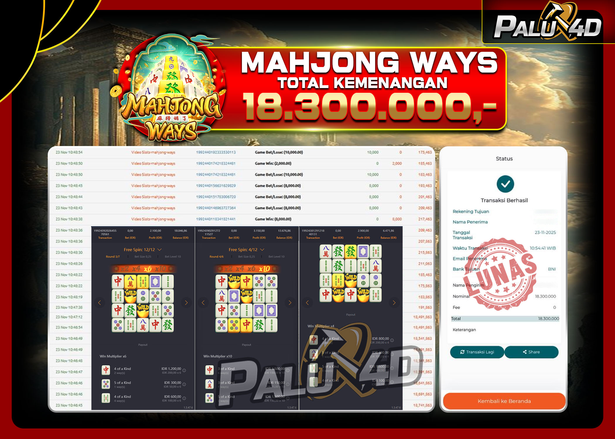 PALU4D – Menang Slot MAHJONG WAYS   Rp.18.300.000.,- LUNAS