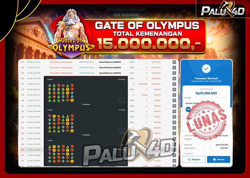 PALU4D – Menang Slot GATES OF OLYMPUS Rp.15.000.000.,- LUNAS