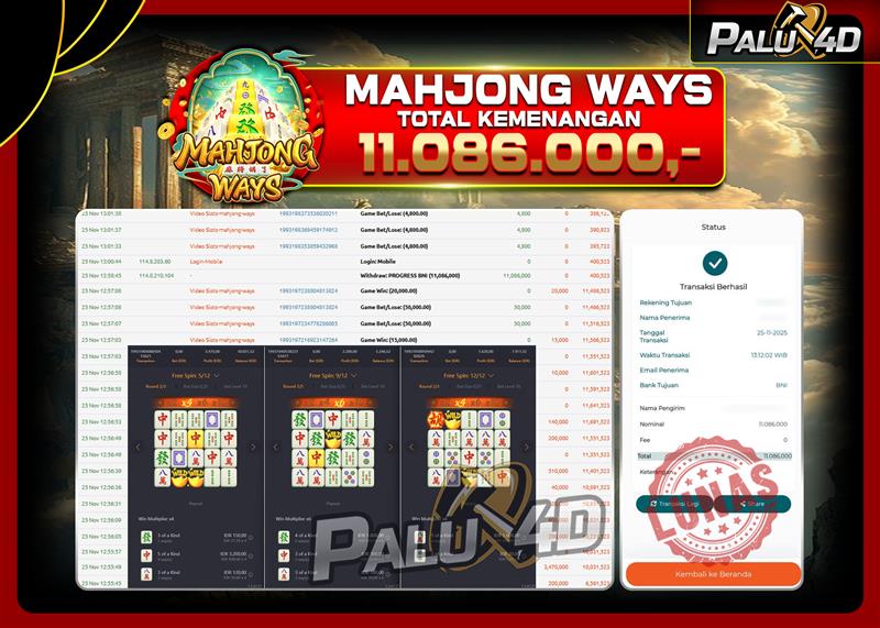 PALU4D – Menang Slot MAHJONG WAYS   Rp.11.086.000.,- LUNAS