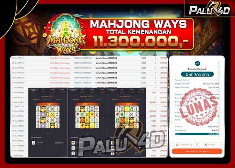 • PALU4D – Menang Slot MAHJONG WAYS   Rp.11.300.000.,- LUNAS