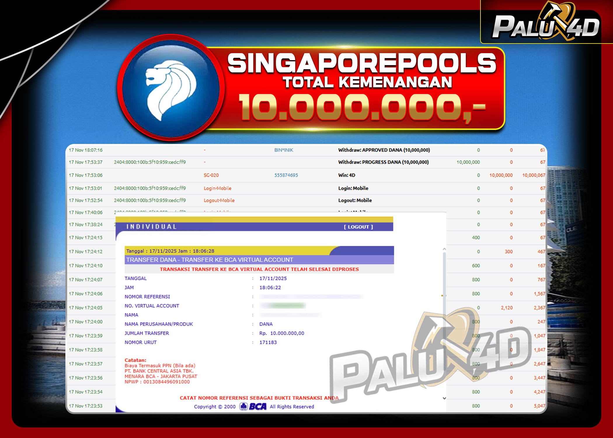 PALU4D – Menang Togel SINGAPOREPOOLS Rp.10.000.000.,- LUNAS PALU4D – Selamat bagi pemenang yang mendapatkan jackpot hari ini 17 NOVEMBER 2025 di game Togel […]