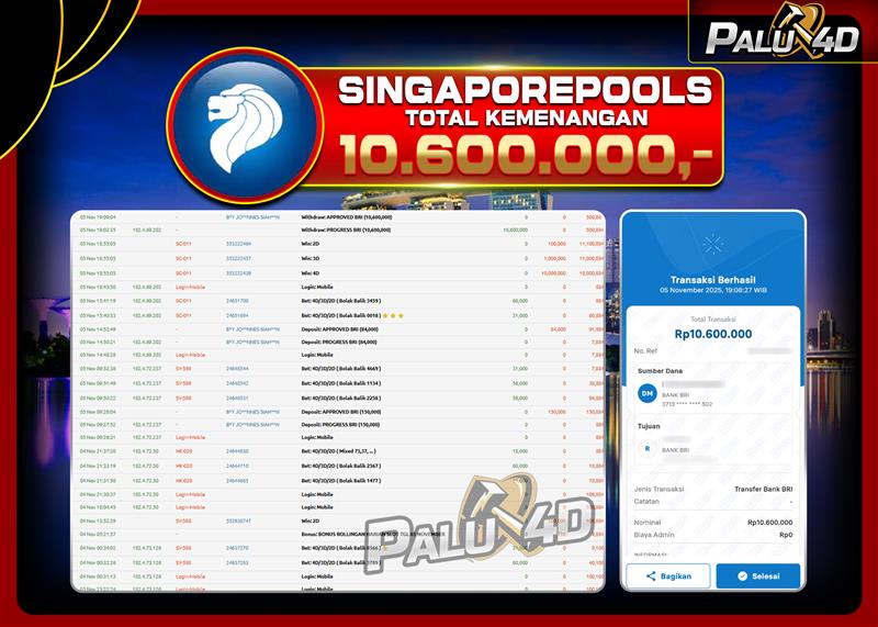 PALU4D – Menang Togel SINGAPOREPOOLS Rp.10.600.000.,- LUNAS PALU4D – Selamat bagi pemenang yang mendapatkan jackpot hari ini 05 NOVEMBER 2025 di game […]