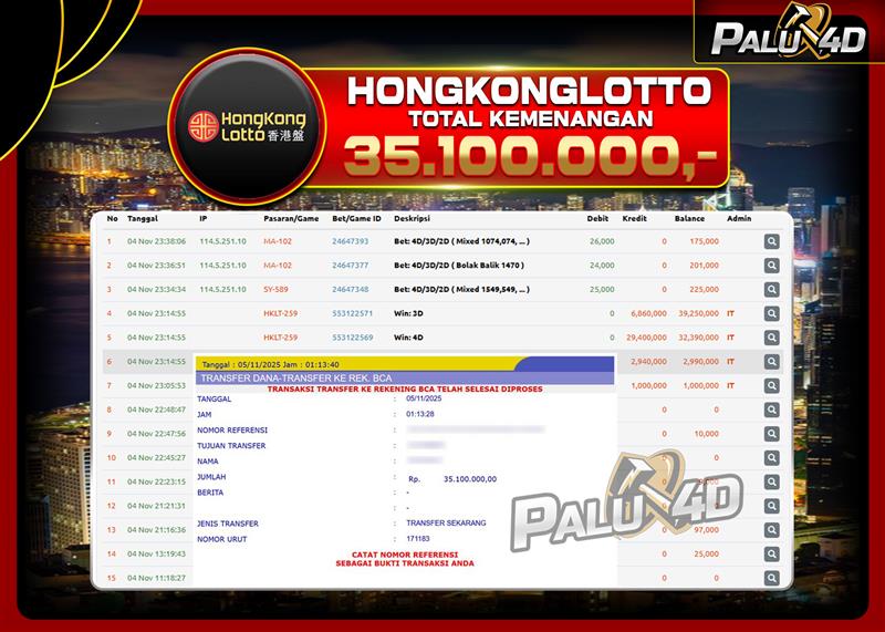 PALU4D – Menang Togel HONGKONGLOTTO Rp.31.100.000.,- LUNAS PALU4D – Selamat bagi pemenang yang mendapatkan jackpot hari ini 04 NOVEMBER 2025 di game […]