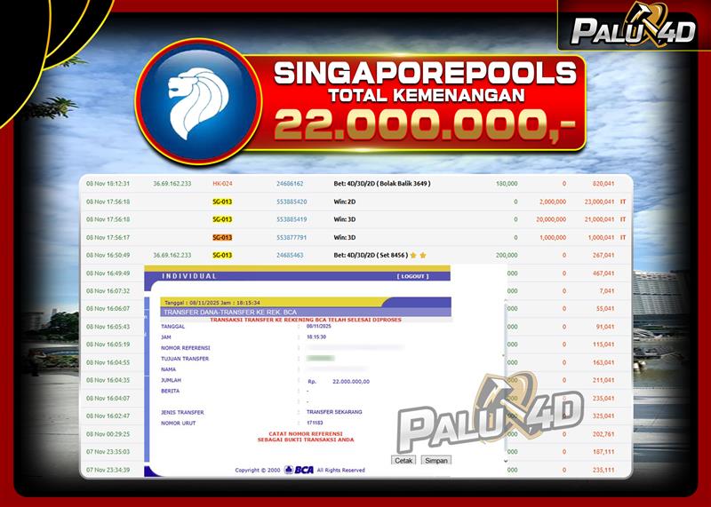 PALU4D – Menang Togel SINGAPOREPOOLS Rp.20.000.000.,- LUNAS PALU4D – Selamat bagi pemenang yang mendapatkan jackpot hari ini 22 NOVEMBER 2025 di game Togel […]