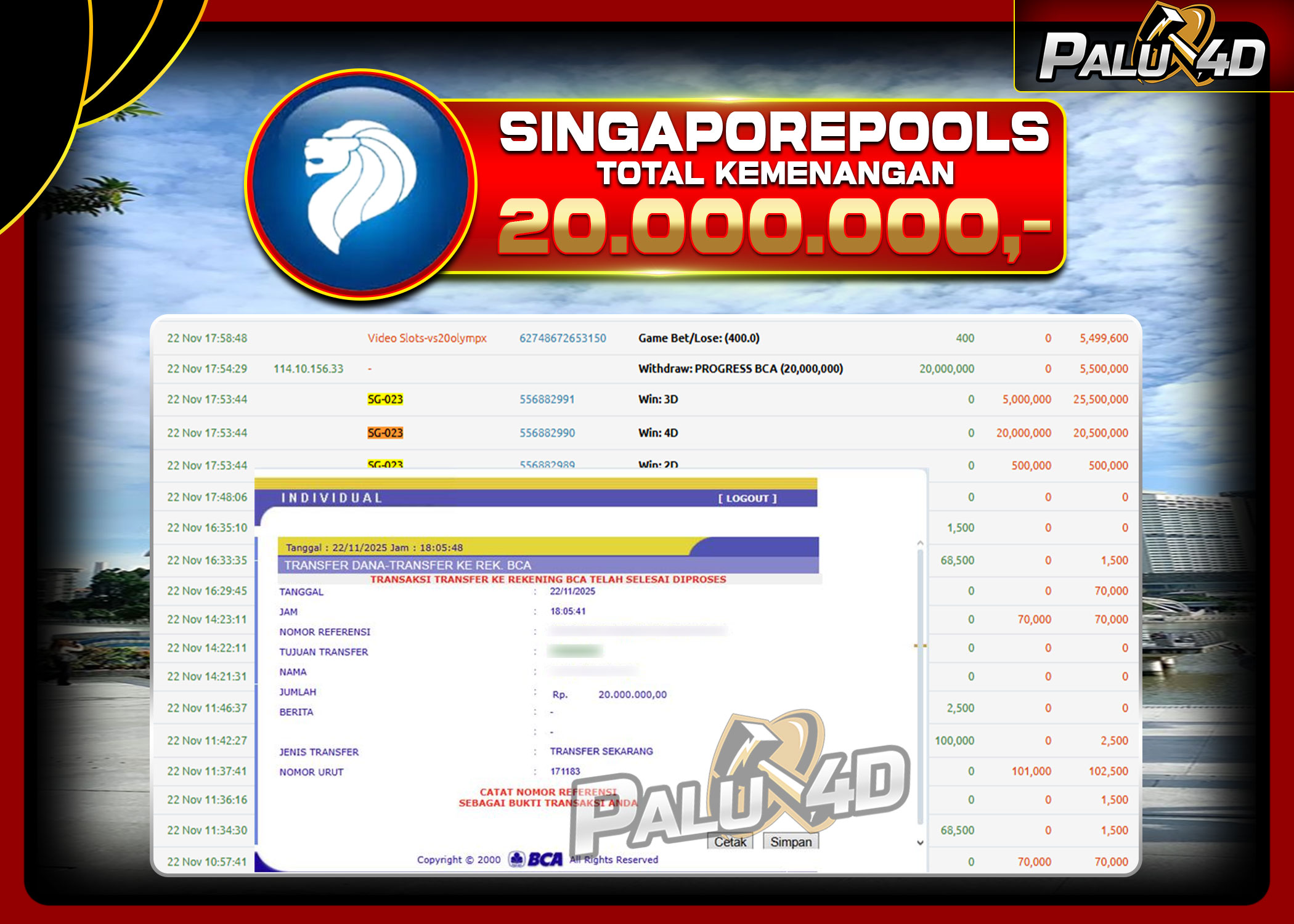 PALU4D – Menang Togel SINGAPOREPOOLS Rp.20.000.000.,- LUNAS