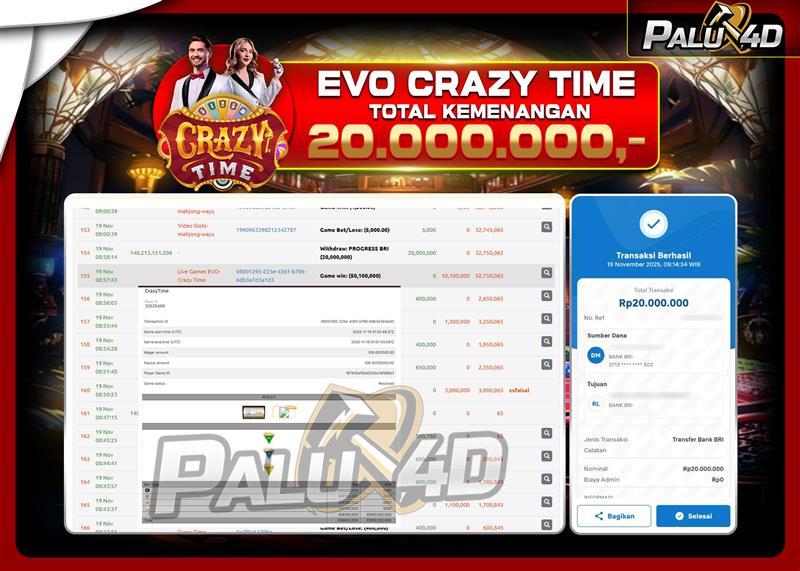 PALU4D – Menang Live Games EVO CRAZY TIME Rp 20.000.000.,- LUNAS