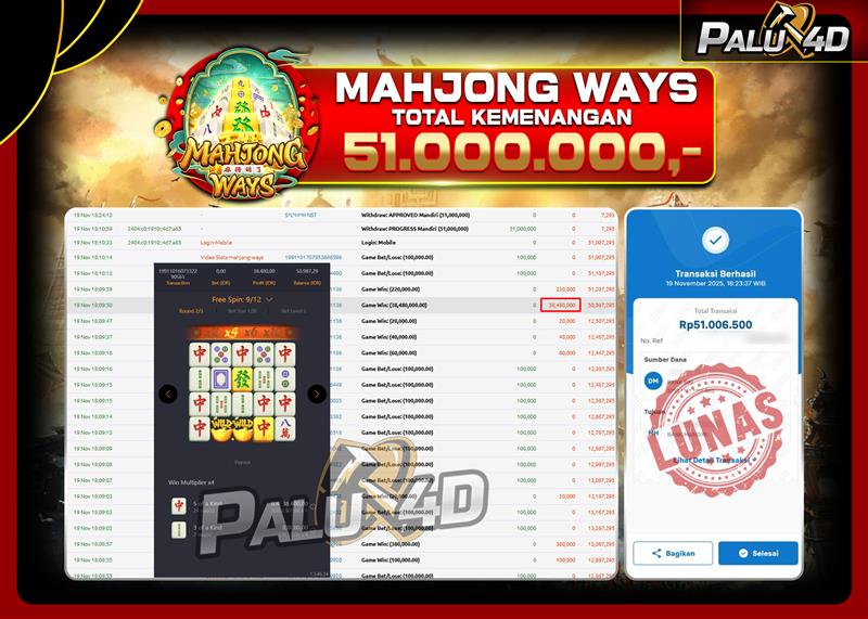 PALU4D – Menang Slot MAHJONG WAYS   Rp.51.000.000.,- LUNAS