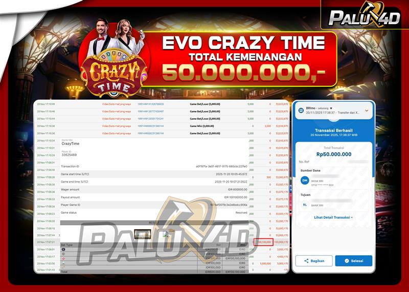 PALU4D – Menang Live Games EVO CRAZY TIME Rp 50.000.000.,- LUNAS