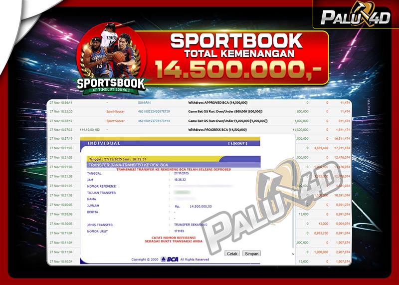 PALU4D – Menang SPORTBOOKS TARUHAN BOLA Rp.14.500.000.,- LUNAS