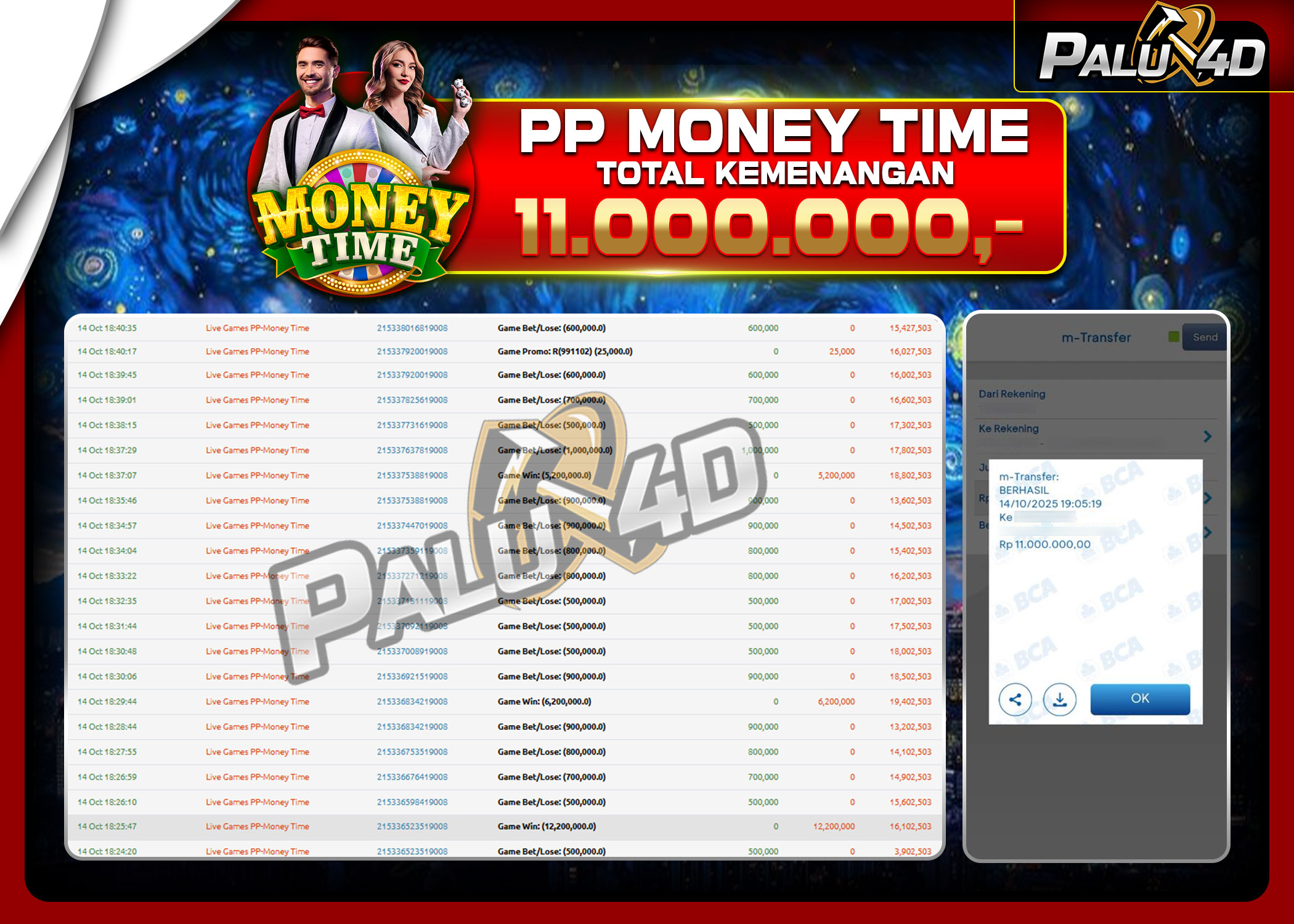 PALU4D – Menang Live Games MONEY TIME Rp 11.000.000.,- LUNAS