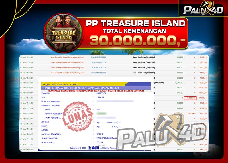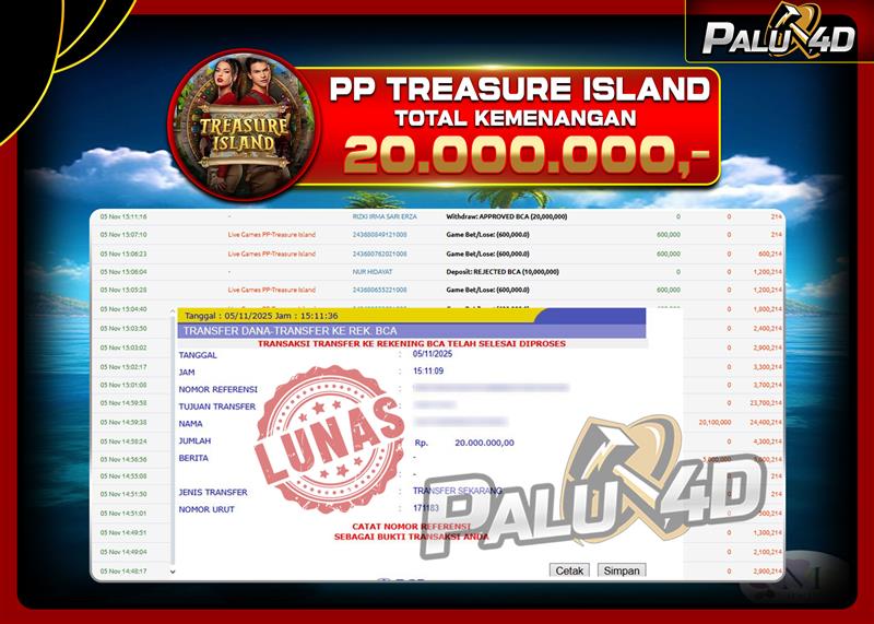 PALU4D – Menang Live Games TREASURE ISLAND Rp.30.000.000.,- LUNAS PALU4D – Selamat bagi pemenang yang mendapatkan jackpot hari ini 05 NOVEMBER 2025 […]
