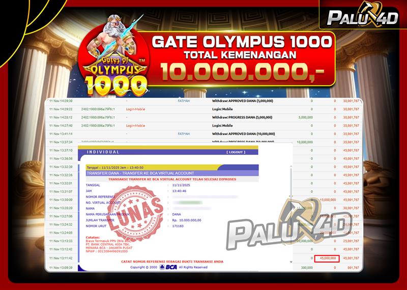 PALU4D – Menang Slot GATES OF OLYMPUS 1000  Rp10.000.000.,- LUNAS